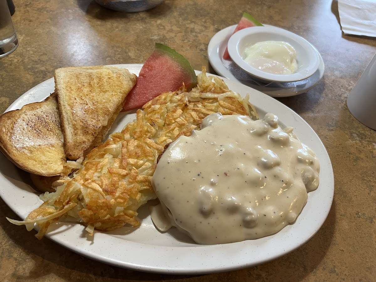 Great place for breakfast. Loved the sausage gravy, there was a really tasty herby flavor to it. The biscuits were nice and fluffy too. My son gets the chicken fried steak everywhere we go and said that it was excellent. The prices are the best I've seen in Vancouver. Great wait staff as well. Be prepared to wait a little bit for a table and for your food after you order. We will definitely be back.
