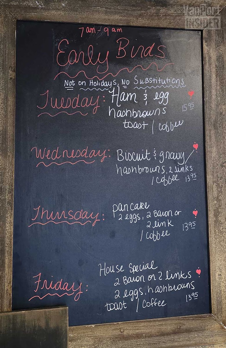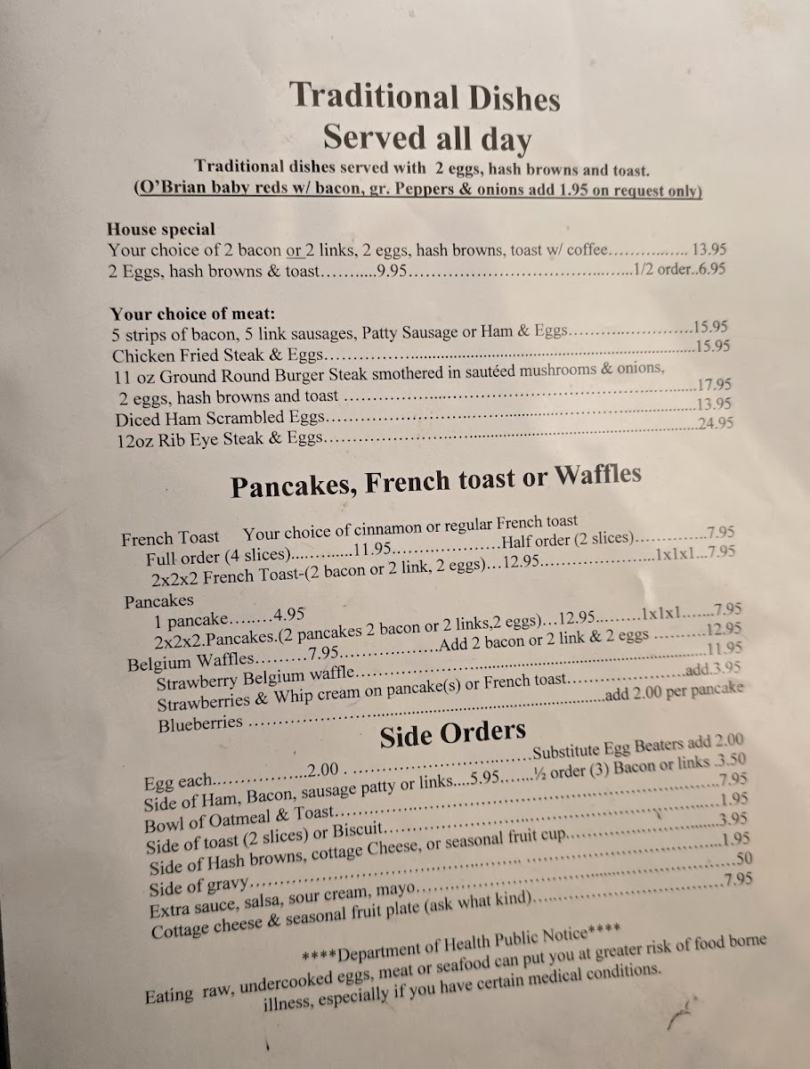 The menu naturally suits leisurely mornings or early midday meals, fitting a crowd that enjoys classic American breakfast staples in a relaxed environment. The food feels homemade and traditional—an ideal match for the welcoming atmosphere where locals and visitors gather to share a steady start to their day or a comforting midday bite.