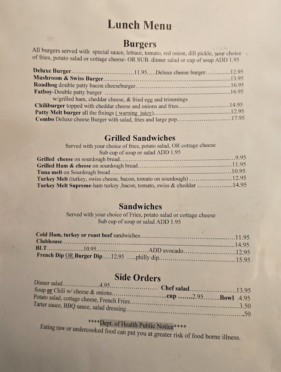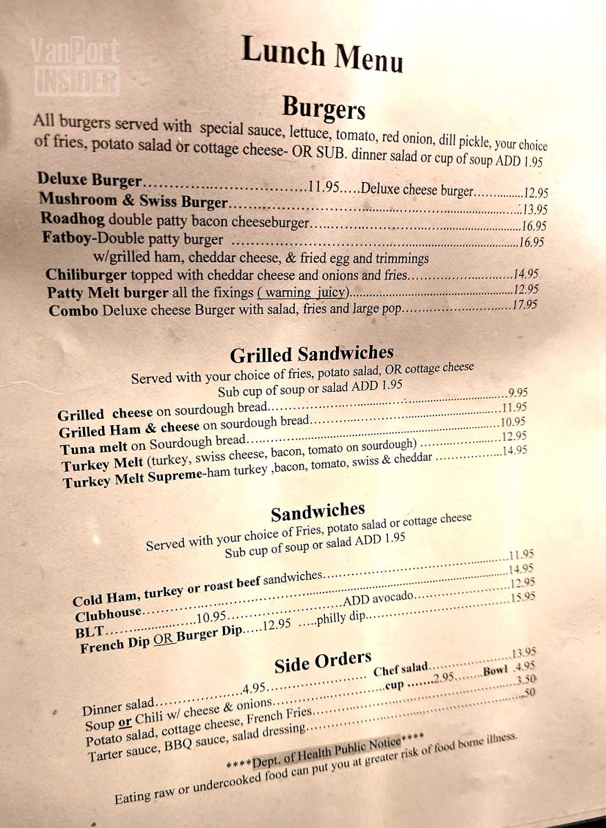 - Simple yet satisfying lunch choices like burgers and cheeseburgers with fries